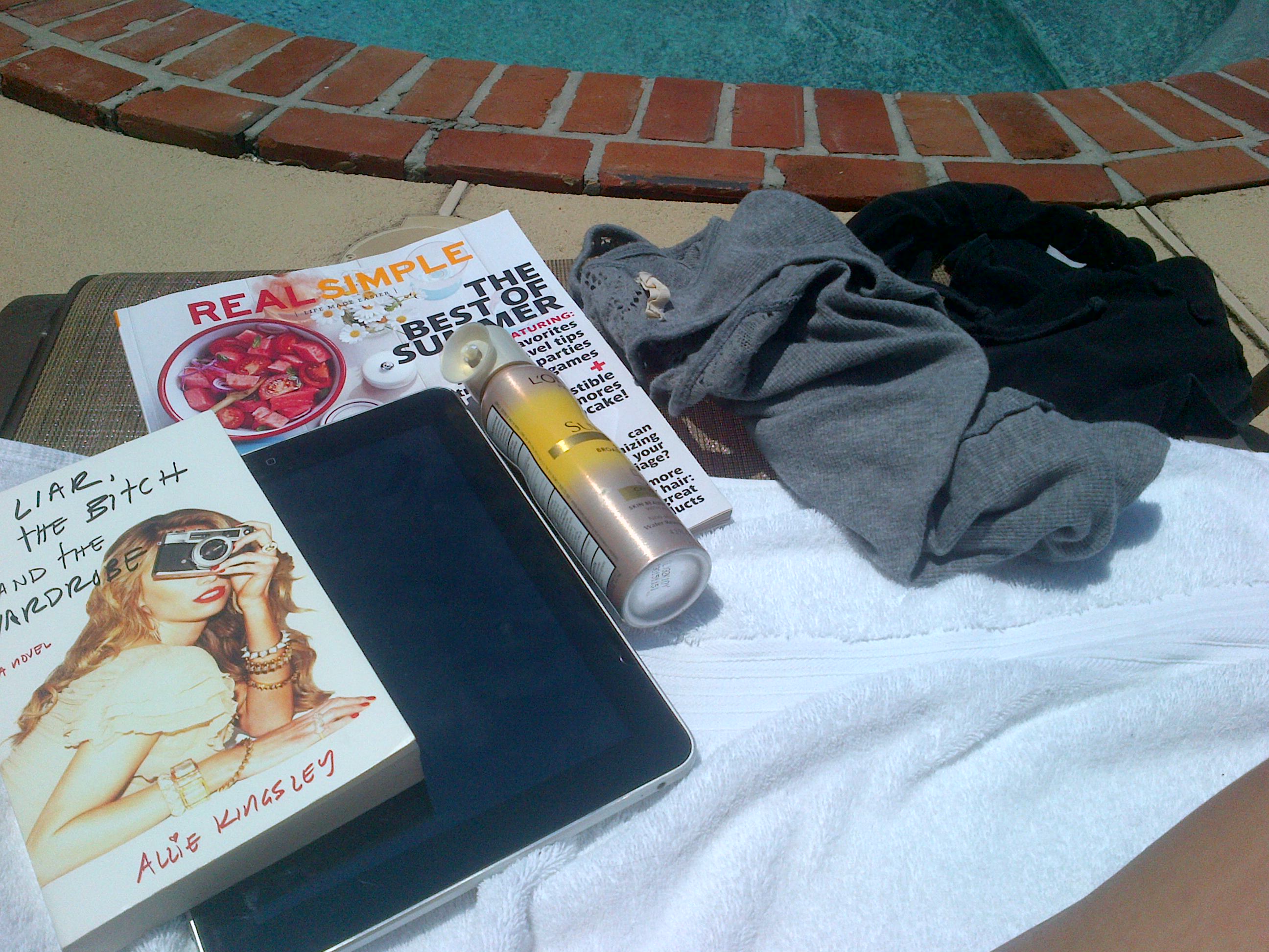 After the gym and a protein shake, I packed my beach bag, and headed to the pool equipped with a book, my iPad, a magazine, sunscreen, and a cooler full of raw veggies and guacamole (Tone It Up, approved).