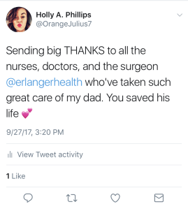 I landed in Chattanooga on Friday morning, and caught a Lyft to get to the Erlanger Health System that was about 20 minutes away. I was trying to see my dad before he was wheeled into surgery.