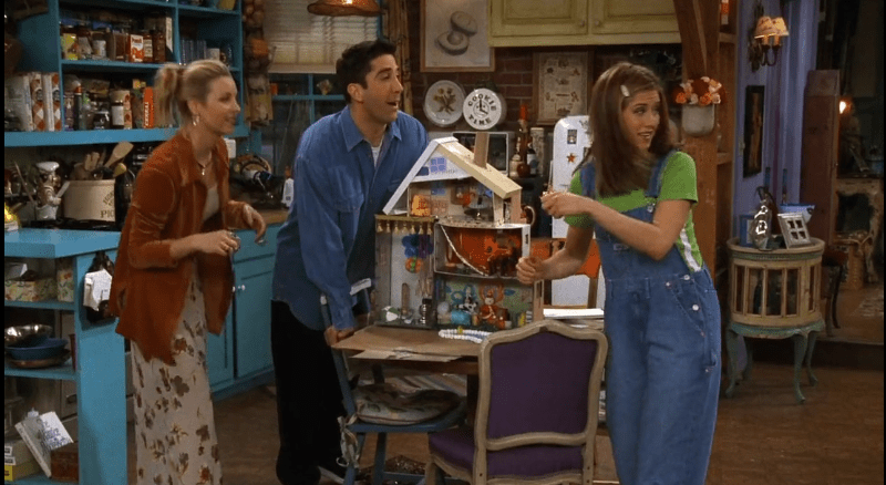 There’s another episode where Monica’s aunt passes away, but leaves a pretty fancy dollhouse for her and she’s all excited to play with it. But, when Phoebe comes over and wants to play with it, she doesn’t agree with her eclectic style, especially when her dollhouse is very Victorian.