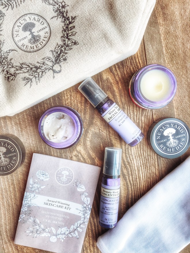 I got their Award Winning Skincare Kit, which said it was an introduction to their award winning natural and organic skincare favorites. The products have won literal awards! The Kit includes their Wild Rose Beauty Balm, White Tea Facial Mist, Beauty Sleep Concentrate and Reviving White Tea Face Mask.