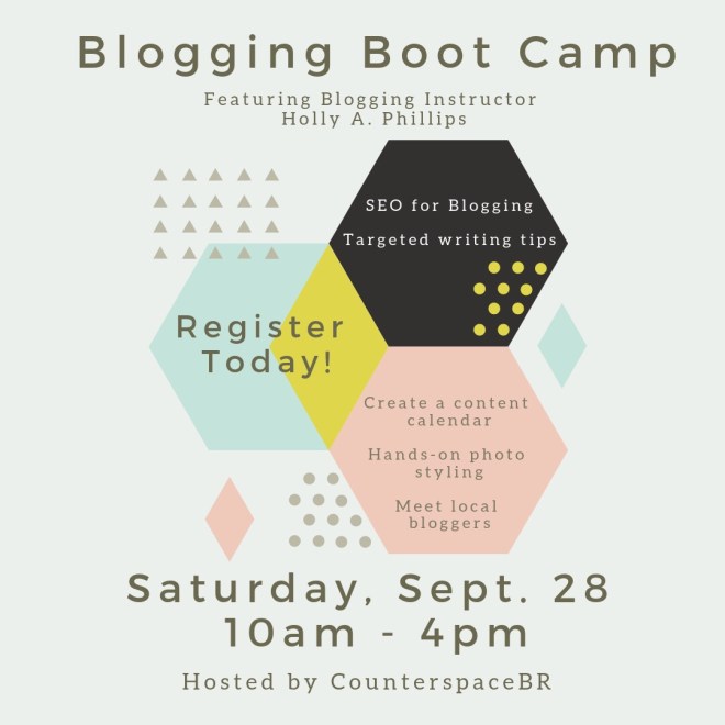 So, I’m really excited to share the first attempt at doing this! I’m bringing a version of that course to Baton Rouge, Louisiana for a 1-day Blogging Boot Camp, which will be September 28.