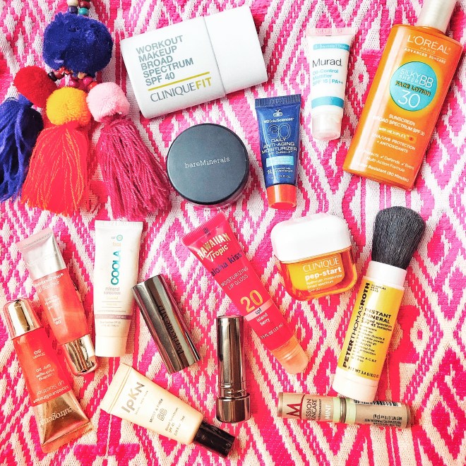 Every time I head to the pool or the beach, I round up all of my facial products that have an SPF. Technically, I should be doing this every day, right? So, I went through my entire stash of makeup and sun care goodies and have put together the ultimate list of makeup and cosmetics that have an SPF.