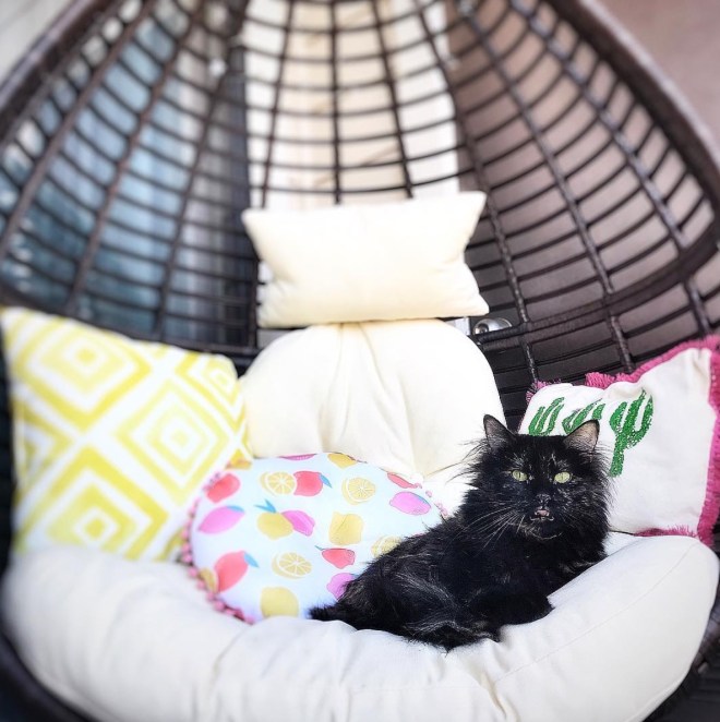 Blanche seems to love it, too. She spends lots of time snacking on catnip, rolling on the rug, and napping under the shade of the chair. Lucky cat!