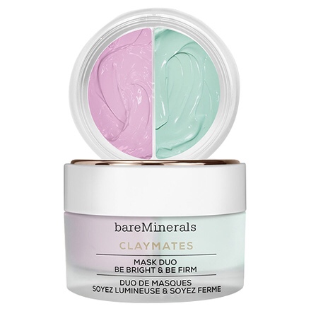 Claymates Mask Duo Be Bright & Be Firm from bareMinerals is a multi-masking duo of mineral-rich clay masks in one jar infused with fruit extracts to help brighten and firm skin.