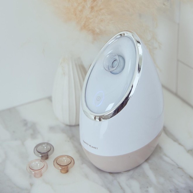 My mom got me the Vanity Planet facial steamer, which is the only one that has the option to use essential oils with the steam. Here is the product description from the Vanity Planet website:
