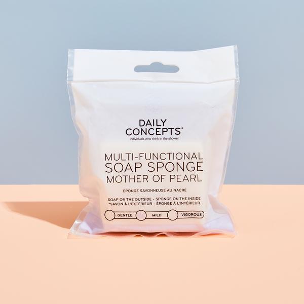 So, when Birchbox sent out an email saying they were having a sale on essential items, I placed an order for everything I needed. One of the items was the Daily Concepts Multi-Functional Mother of Pearl Soap Sponge. Here’s the scoop: