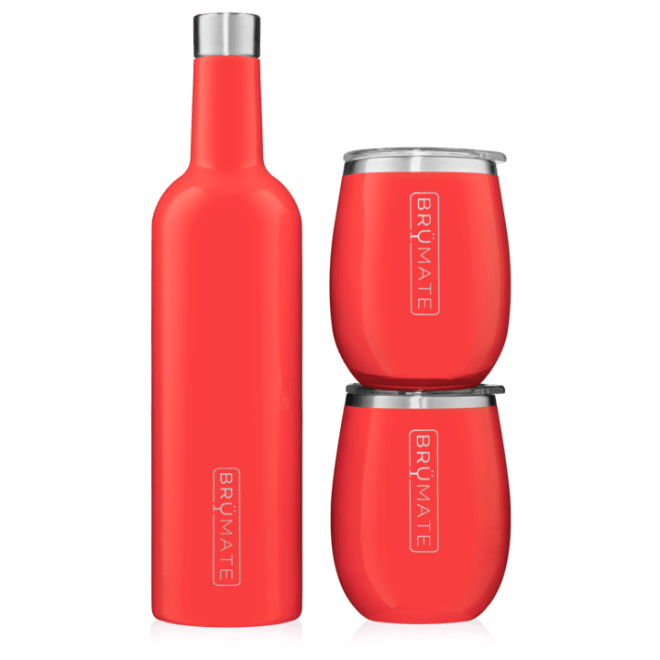 I was able to catch a sale, and I bought the Winesulator Gift Set, which is a Brumate bottle and two matching wine tumblers.