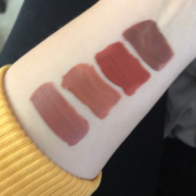 When I got the lip set, I was a little worried they would be too dark for me. But when I swatched them, I realized they weren’t too dark — in fact I think they’d look great on many different skin tones.