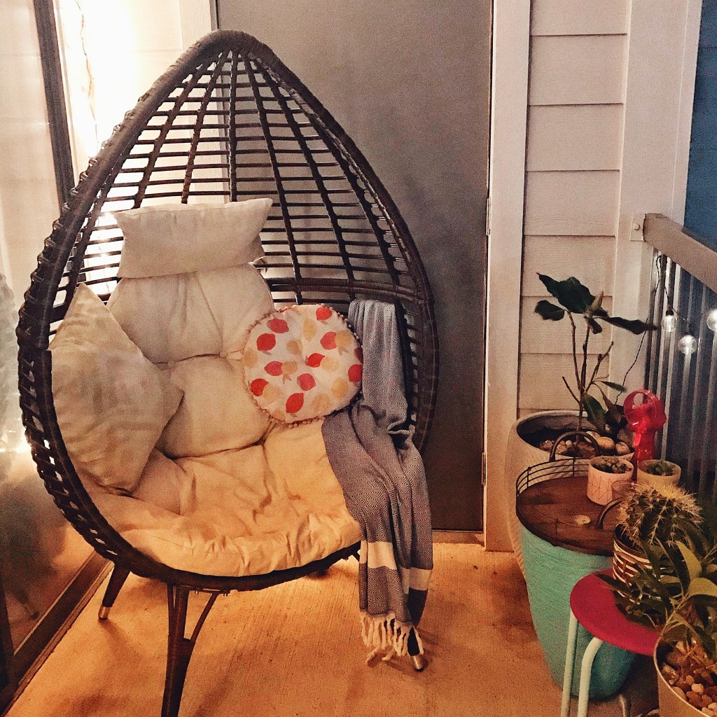 I have an egg chair that has a cushion, lots of pillows, and a light blanket, that all stayed out there… so I washed ALL of it… yeah, I literally put it all in my bathtub, sprayed it with cleanser, and turned the shower on to rinse – ha! While everything was in the dryer, I wiped down all the little slats in the chair… yeah.