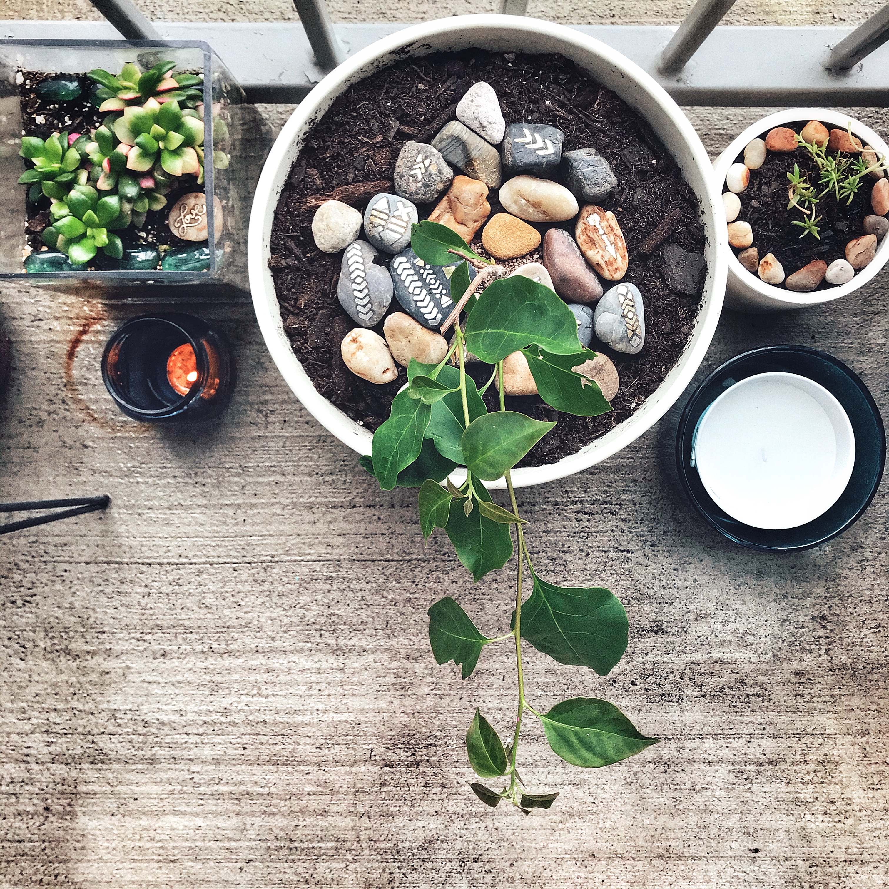 I put my Holly bush in a new larger pot in hopes it’ll grow and moved a succulent I planted last year into a bigger pot as well.