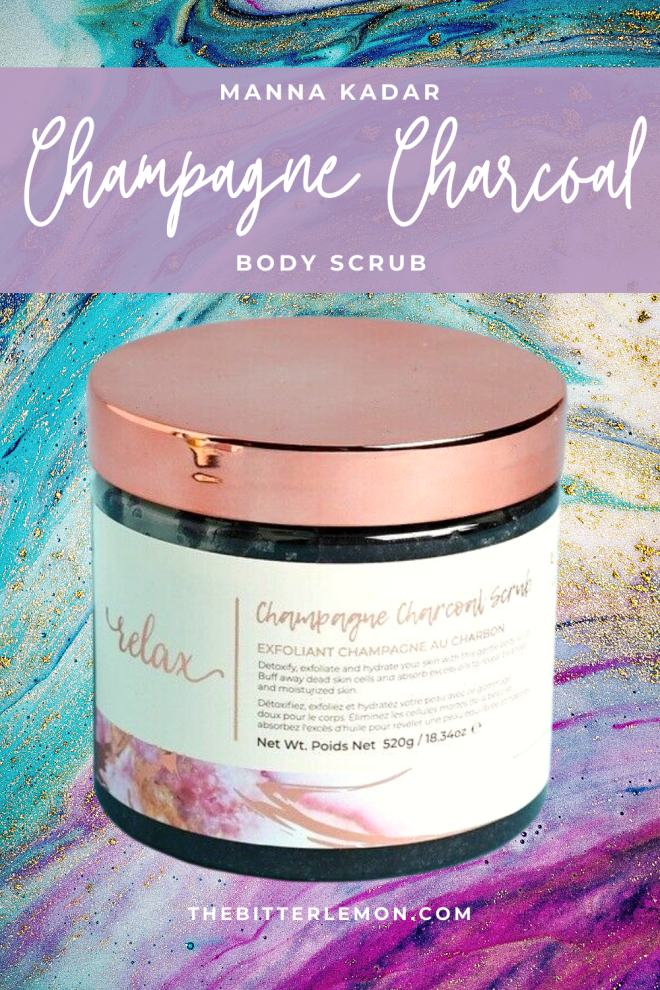 But, I figured I’d kick the blog week off with a luxurious body scrub: it’s the Manna Kadar Champagne Charcoal Body Scrub.