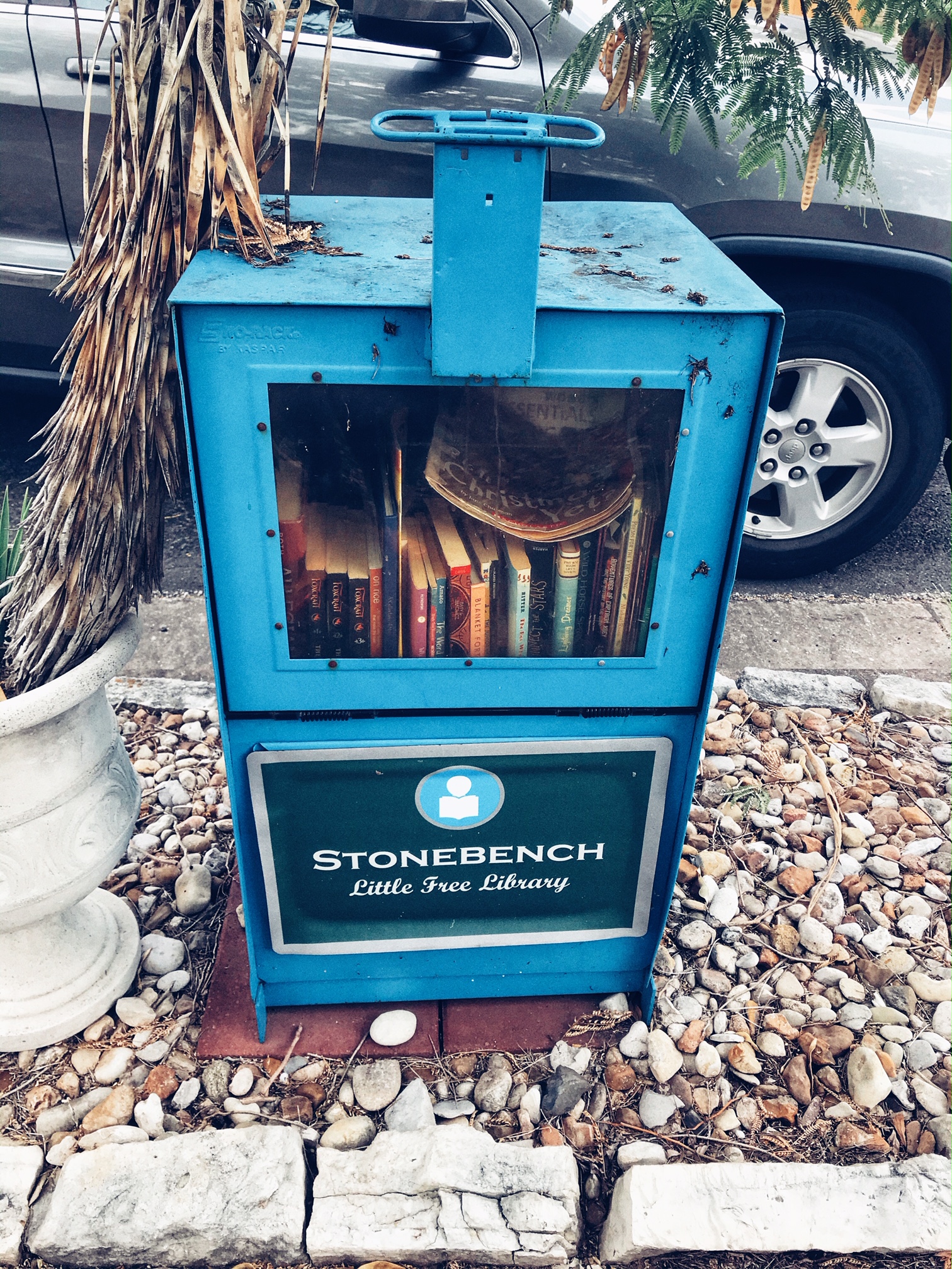 I looked up a few Little Free Libraries in the neighborhood near my apartment complex and drove to five of them to drop off a stack of 9 books I’d read, but didn’t plan on keeping.