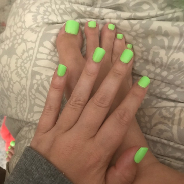 - Mani: Bounce | Pedi: Feelings (neon green)
