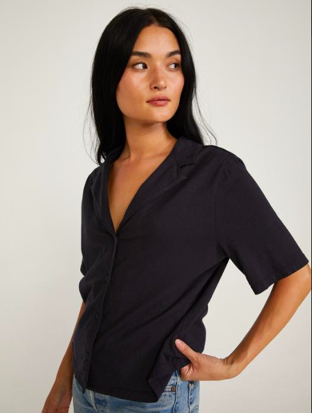 This was more of a trendier purchase — it looks like a nice “pajama top” — that has a rounded collar, short sleeves, and buttons down the front. I got the tan option, and although I don’t necessarily think it flatters my arms, it is a cute top.