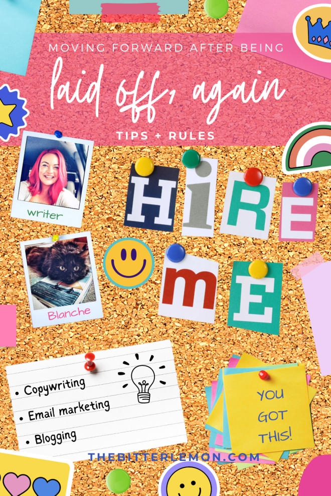 Share your story. This blog has always been a place to spill my guts, and I always feel so much better. Sharing my story about job uncertainty has also always helped me find work! People aren’t going to know you need a job unless you tell them, so post it on your social media, share it on your podcast, put a sign on your front door, whatever. Spread the word, put it into the universe, and let it go.