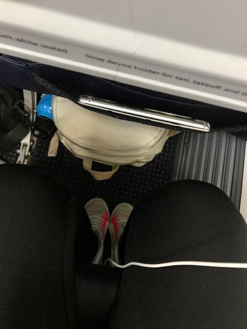 - It has two cup holders (one on each side). I always bring. a reusable bottle to the airport with me and the cupholder means it’s within reach. I use the second holder to stuff a pair of slipper socks, in case I get stuck with a long layover and need extra comfort.