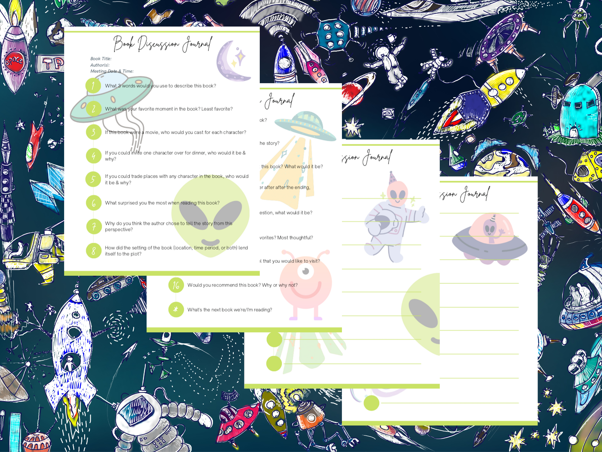 Another item that can be used all year long: Alien and UFO Book Journal Discussion Pages!