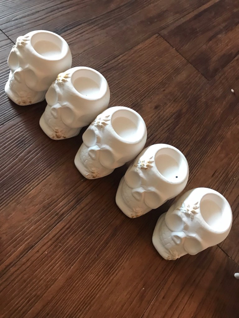 In case your Dollar Tree doesn’t have these, I found some other ceramic skulls online.