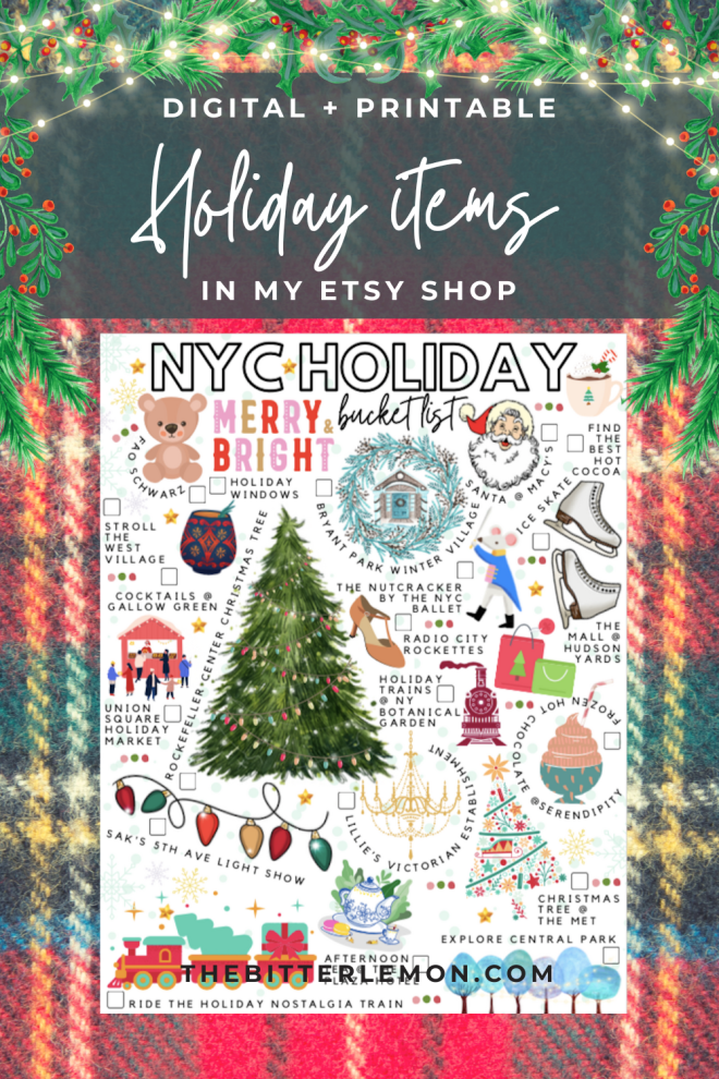 I’ve visited New York City three times now, and I love it — especially during the holidays! So, I put together a mix of local favorites and must-sees… in a cute and festive Bucket List!