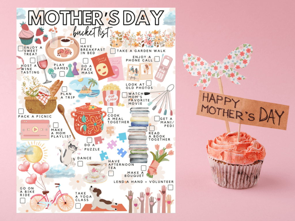 Mother’s Day is coming up, and my mom actually pitched the idea of a Bucket List for the occasion! I didn’t really know what to include on the list, but she already had ideas ready for me. So, I decided to work on it, and I love how it turned out. It would make a great gift, and I’m excited to work on a Father’s Day version.