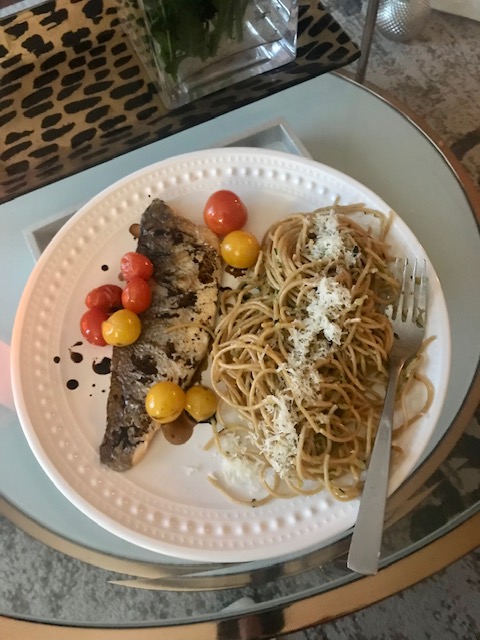 Recently, I made simple balsamic-glazed sea bass with roasted tomatoes, and I served it with zucchini butter pasta. This meal looked so gourmet, but was so easy and light!