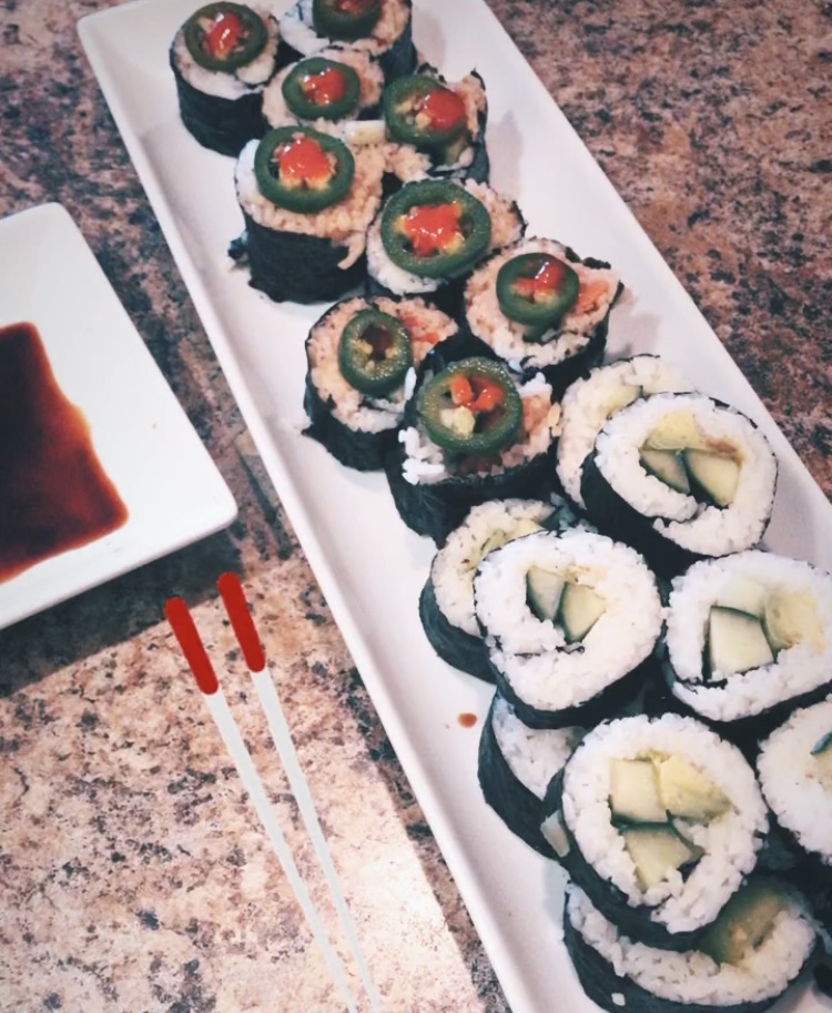 One thing I was craving for awhile was sushi. Sometimes I do get actual sushi (with fish) or sometimes I go for the veggie — either way, buying it is expensive.