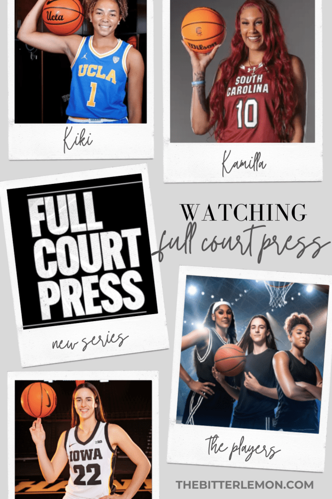 “Full Court Press” is an ESPN original series that follows the basketball careers of Caitlin Clark (Iowa guard), Kamilla Cardoso (South Carolina center), and Kiki Rice (UCLA guard) from the 2023 preseason to the 2024 championship game and the WNBA draft.