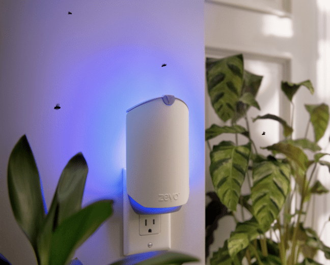 The Zevo trap uses UV light to attract bugs, and it does it discretely (there is no sound or smell, and you can’t see the dead bugs) with a covered sticky trap.