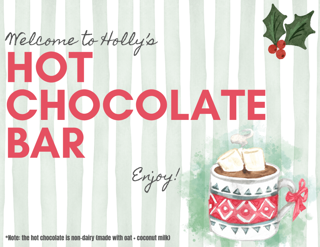 Of course, you can take this idea and make it your own. Change up the toppings (I think adding candy would be fun or, if it’s adults-only, pop a bottle of liqueur on the bar!) or swap the cocoa recipe — the options are endless!